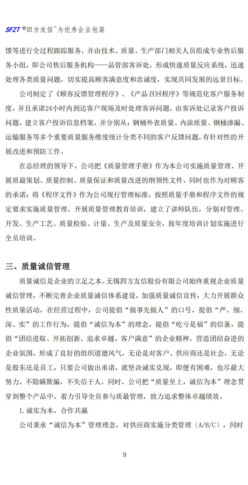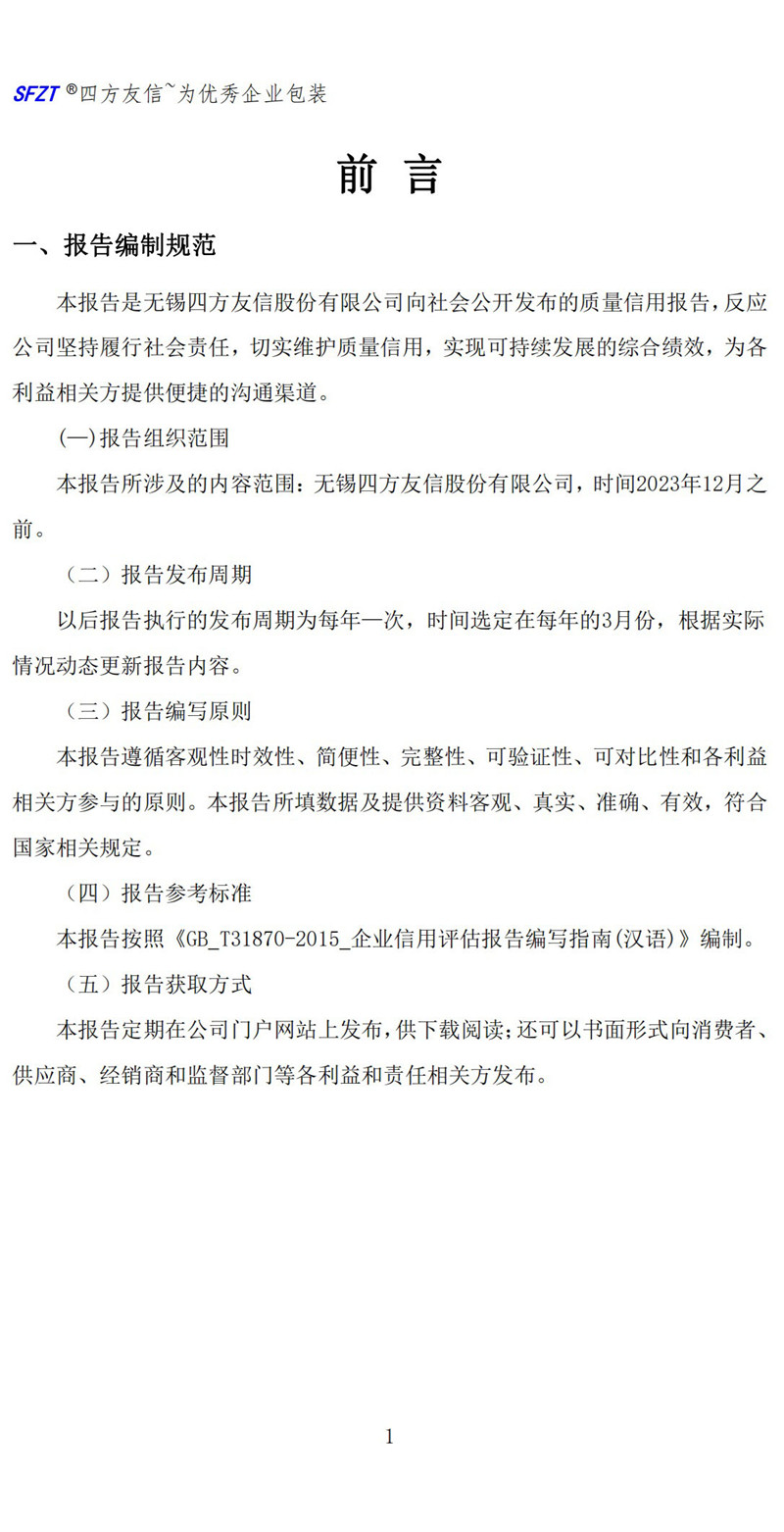 質(zhì)量信用報告